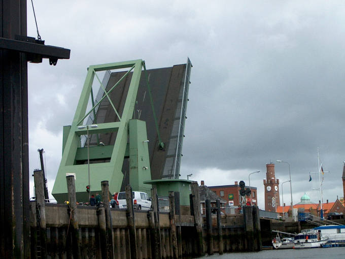 Nahezu halbstündlich klappt die Brücke zum alten Hafen