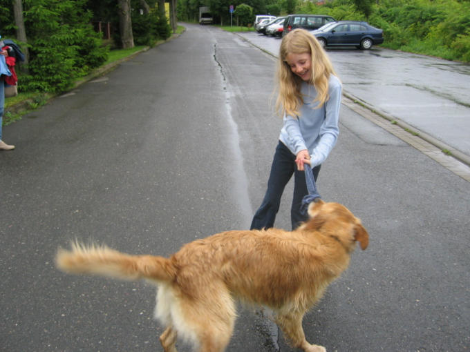 23.7. Jella freundet sich mit dem Hund vom Restaurant an, der uns dann auf Schritt und Tritt begleitet